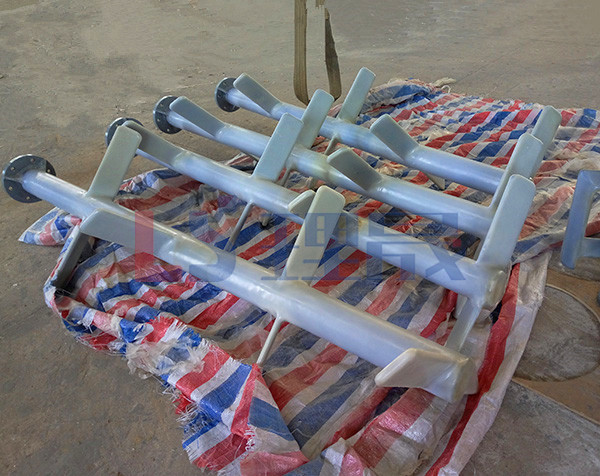 鋼襯塑攪拌槳采用聚烯烴為原料加熱滾塑一次成型,聚烯烴是乙烯、丙烯和丁烯共聚而成的一種烯烴共聚物,它保持了乙烯、丙烯的耐腐蝕性,又具良好的耐熱性、耐沖擊和電絕緣性能。其使用溫度可比聚乙烯高出20-30度。同時它克服了聚乙烯和聚丙烯與金屬結合力差的缺點,具有很強粘結力,能與金屬牢牢的結合在一起,由于較強的結合力,限制了其因冷熱變化而引起的收縮和伸長,從而滾涂PO的攪拌器不會因收縮和膨脹而產生破壞,確保了設備的長期穩定使用。